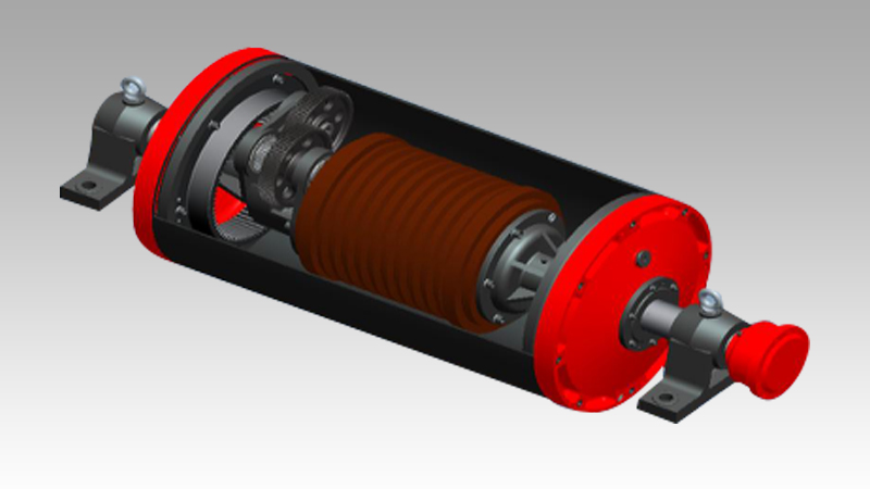 TDY型油冷式電滾筒是我國(guó)目前廣泛采用的普通型電滾筒。滾筒電機(jī)由專業(yè)的電滾筒電機(jī)廠配套,其性能指標(biāo)不低于同等功率的我國(guó)Y系列電機(jī)的指標(biāo)。該系列滾筒齒輪采用表面磨齒處理,具有結(jié)構(gòu)緊湊,運(yùn)行平穩(wěn),噪音低 ,安裝方便等優(yōu)點(diǎn)。廣泛應(yīng)用于礦山、港口、熱電、冶金、建材、混凝土等各部門的中小型帶式輸送機(jī)。
